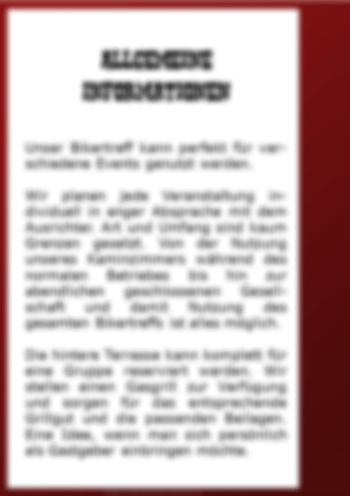 Beispiele sind unter "Bilder" im Ordner "Feiern im Bikertreff" zu sehen.